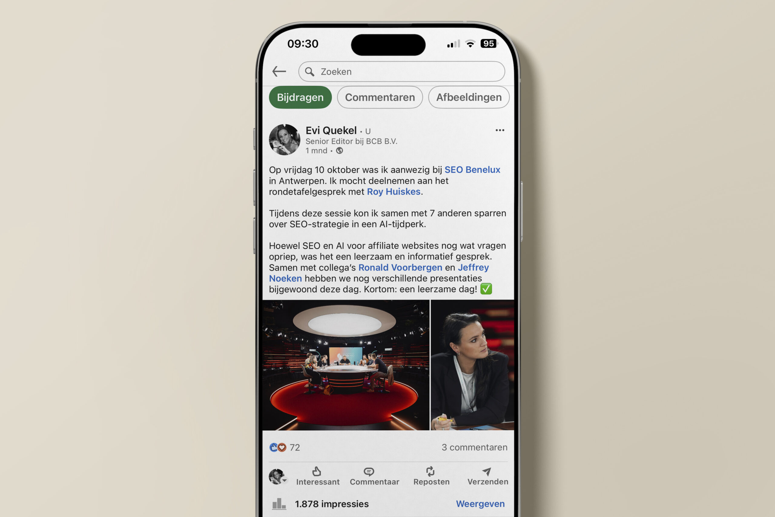 Sinds 2025 houdt Evi zich ook bezig met SEO. Samen met collega Ronald Voorbergen zoekt ze uit welke pagina's goed scoren en welke pagina's verbetering nodig hebben.