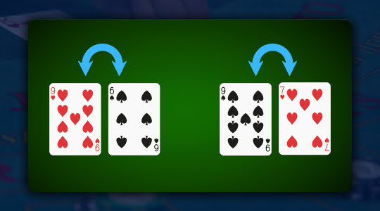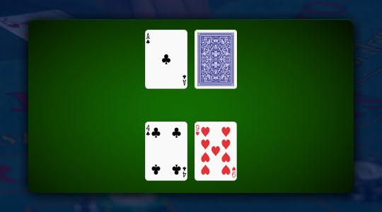 - 2. Zowel de speler als de dealer krijgt twee kaarten. Die van de speler zijn direct te zien. Eén kaart van de dealer ligt open, de andere is gesloten. De open kaart geeft een speler waardevolle informatie over de kaarthand van de dealer. Alle kaarten vertegenwoordigen hun eigen waarde (2 tot en met 10), met twee uitzonderingen: de Aas is 1 of 11 punten waard, en elke kaart met een plaatje is 10 punten waard.