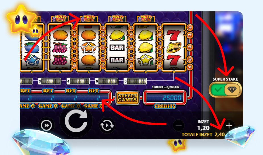 Bij het activeren van de Super Stake-feature verdubbelt je inzet. Veel spelers denken dat hierdoor ook de uitbetalingen voor winnende combinaties hoger worden, maar dat is niet het geval. De uitbetalingen voor een winnende combinatie blijven namelijk gelijk, ongeacht of je met of zonder Super Stake speelt.