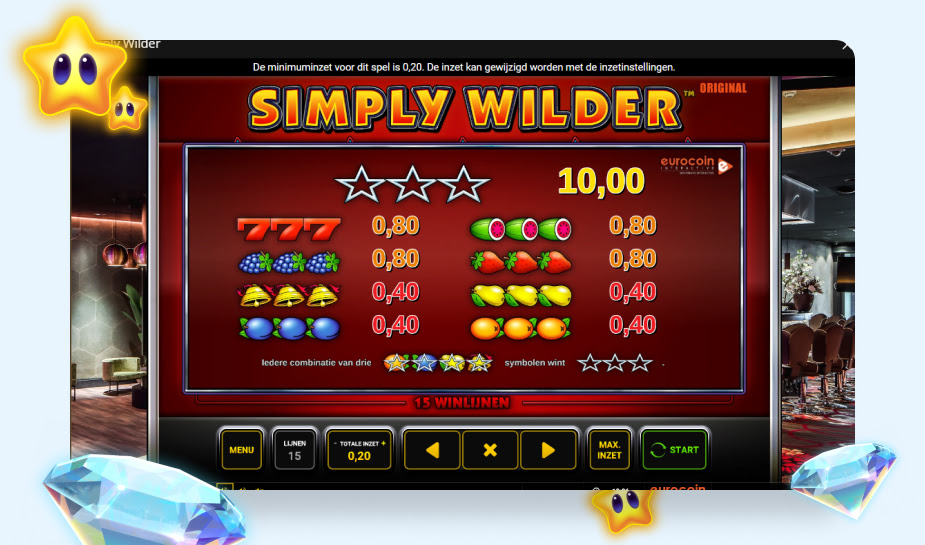 “Eurocoin Interactive heeft met Simply Wilder een waardige opvolger van Simply Wild op de markt gebracht. Waar je bij het origineel nog echt een gehele fruitautomaat in een soort kroegachtige omgeving in beeld krijgt, is dit bij Simply Wilder wel anders. Hier wordt het gehele scherm gevuld met waar het om gaat, de rollen met de fruitsymbolen erop. Qua uitstraling vind ik persoonlijk Simply Wild wat meer echt in retrostijl. Als je dat spel aan het spelen bent, lijkt het echt net alsof je in een speelhal zit. Dat gevoel krijg ik minder bij Simply Wilder.