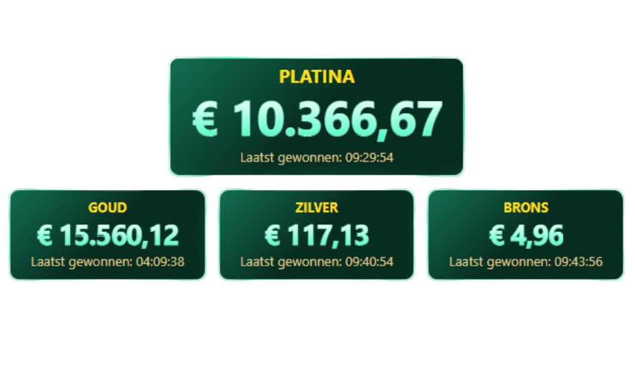 In de afbeelding hierboven zie je dat de Platina-jackpot lager is dan de gouden. Dat komt omdat de Platina jackpot toevallig net was gevallen. Die stond op ongeveer € 250.000.