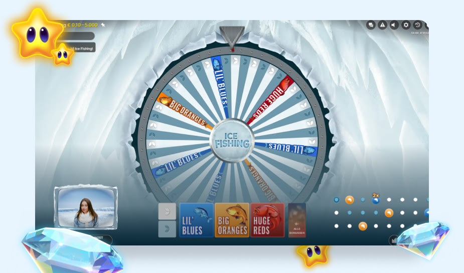 “Ice Fishing Live brengt een frisse variatie binnen de categorie Money Wheel-spellen van Evolution. Het spel combineert een winterse setting met een virtueel rad, willekeurige multipliers en drie unieke bonusspellen waarin spelers virtueel vissen vangen voor extra vermenigvuldigers. Hoewel het spel visueel aantrekkelijk is en voor spanning zorgt, voelt de uitvoering anders dan tijdens de presentatie op de ICE-beurs in Barcelona. De host draait niet zelf aan een fysiek rad maar verschijnt slechts klein in beeld, en de rondes verlopen vrij snel. Toch blijft Ice Fishing Live een leuke toevoeging voor spelers die op zoek zijn naar een dynamische live game show met verrassende bonusrondes.”