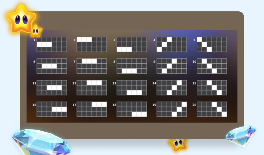 2. Alle 20 winlijnen zijn actief als je met de Super Stake modus speelt. Dit geeft je potentieel meer kans op een winnende combinatie.