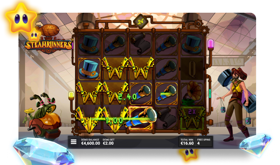 De bonusfuncties komen ook overeen. Zowel Steam Tower als Steamrunners hebben gratis spins, wild-symbolen en vermenigvuldigers die winsten kunnen verhogen. Bij beide bonusspellen zijn het niet zomaar free spins, maar kan de bonus na verloop van tijd steeds beter worden.