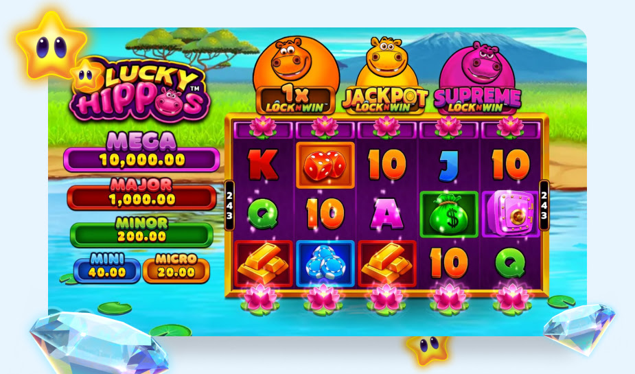 3 Lucky Hippos is een kleurrijke videoslot van game provider Pear Fiction Studios. Het spel draait om drie vrolijke nijlpaarden die elk aan een speciale Lock N Win functie gekoppeld zijn. De Lock N Win bonusrondes kunnen in 3 Lucky Hippos los van elkaar om gecombineerd getriggerd worden. Dat levert interessante combi’s op.