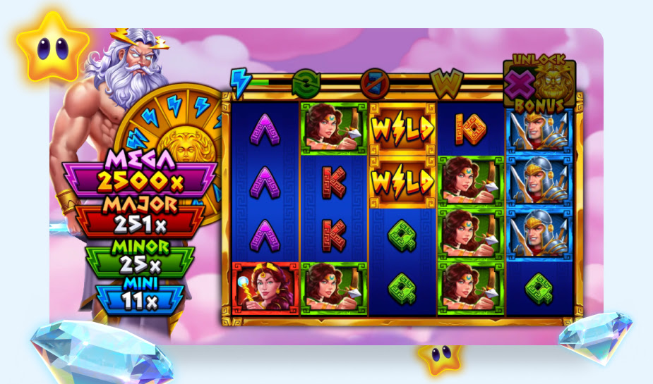 De bonusronde van Alpha Gods: Zeus is pas te ontgrendelen als je de complete progressieve meter gevuld hebt. De voortgangsmeter verdwijnt nu. Op die plek komen nu speciale bonuspotten te staan. Als er op het veld bonus symbolen vallen, worden ze in de bijbehorende bonuspot verzameld. Er is een bronzen, zilveren, gouden en diamanten (paarse) bonuspot.