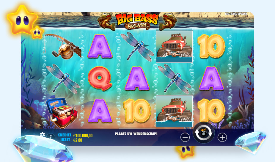 De minimale inzet op het Big Bass Splash slot bedraagt 0,10 euro per draai. Dat maakt de game net wat laagdrempeliger. Het is ook mogelijk om met hogere inzetten te spelen, aangezien het inzet limiet 250,00 euro per draai is.