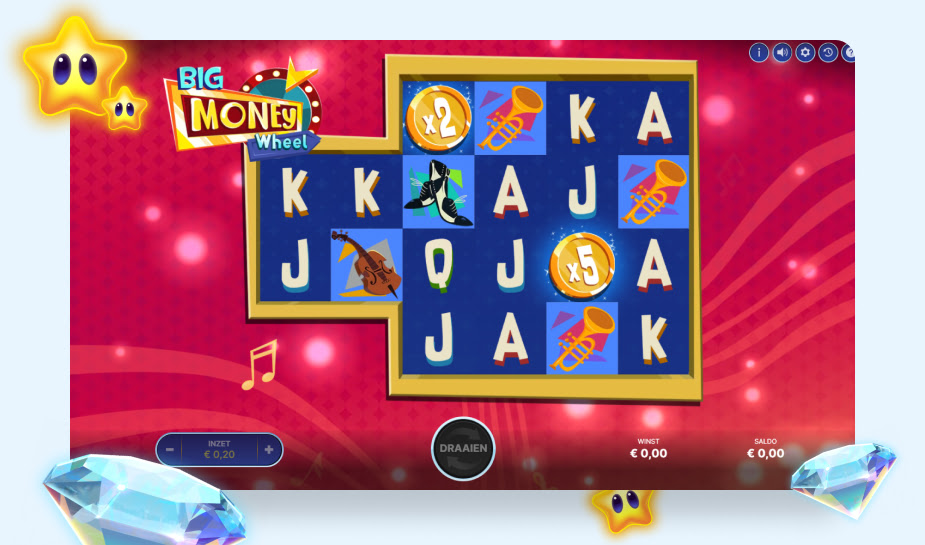Staat er aan het eind van de bonusronde minimaal één mystery symbool op de rollen? Dan activeert dit de Big Money Wheel feature. Je mag aan een groot rad van fortuin draaien. Daarbij maak je kans op Multiplier, Double en Triple prijzen.