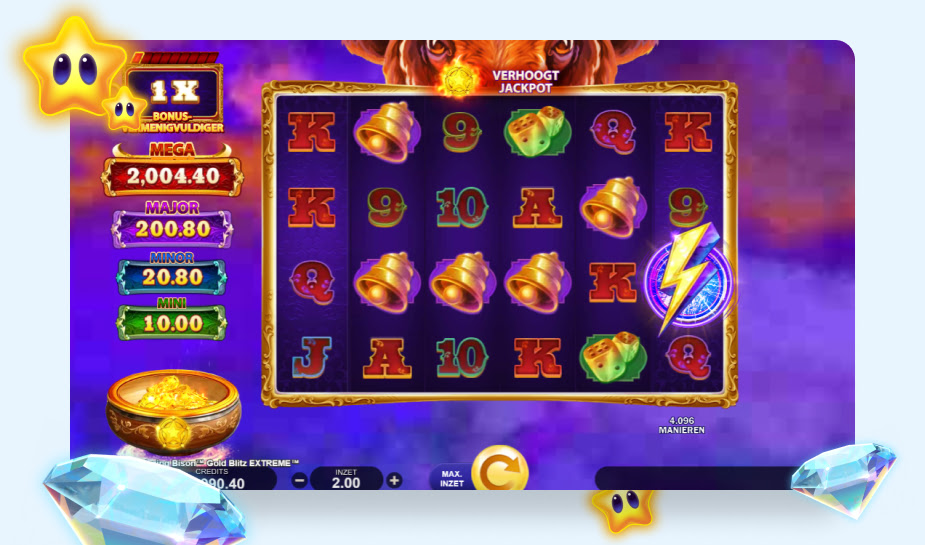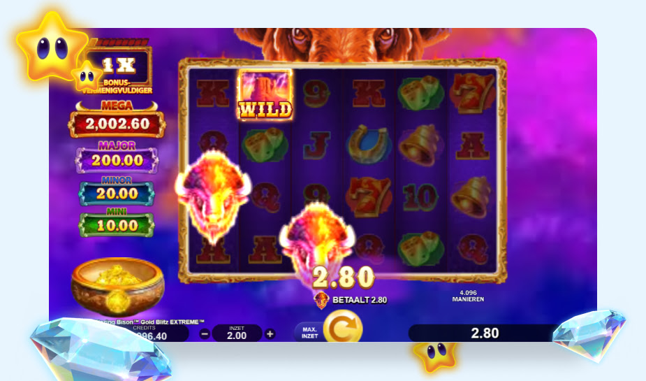 Blazing Bison: Gold Blitz Extreme is een gokkast van Fortune Factory Studios die je meeneemt naar het wilde westen. Hier draait het om bizons, flitsende lichten en een flinke dosis actie. Deze vernieuwde versie bouwt verder op het bekende Gold Blitz-concept en brengt nieuwe functies met zich mee. Met 4.096 manieren om te winnen en vier jackpots in het spel, valt er veel te beleven bij deze gokkast. In deze review zoom ik verder in op hoe deze gokkast in elkaar zit, wat de functies zijn en deel ik mijn mening over het spel die te spelen is bij legale online casino's.