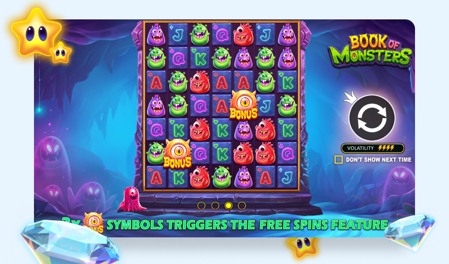 Book of Monsters is een Cluster Pays videoslot van Pragmatic Play. Dit spel combineert verschillende populaire slot-elementen, wat heeft geleid tot een fantastisch resultaat. Book of Monsters is sinds 27 maart 2025 bij legale online casino’s, die Pragmatic Play in het aanbod hebben, te spelen.
