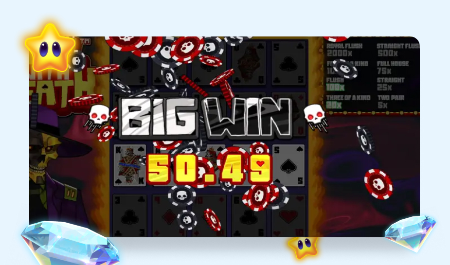 In Deal With Death kun je op twee manieren winnen. Je wint door het maken van winlijnen en het vormen van poker handen.
