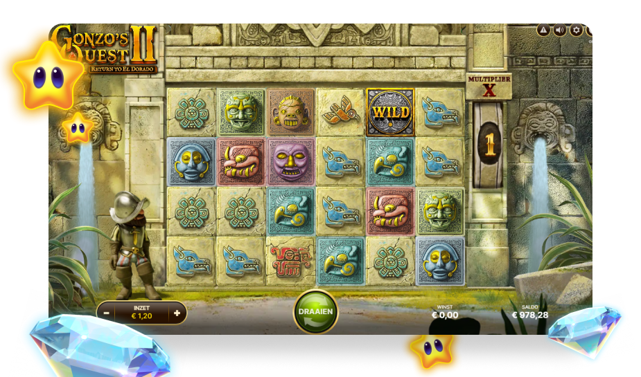In deze gokkast van spelmaker NetEnt keert Gonzo terug naar El Dorado. Dat is een magische stad, waar veel schatten liggen verborgen.