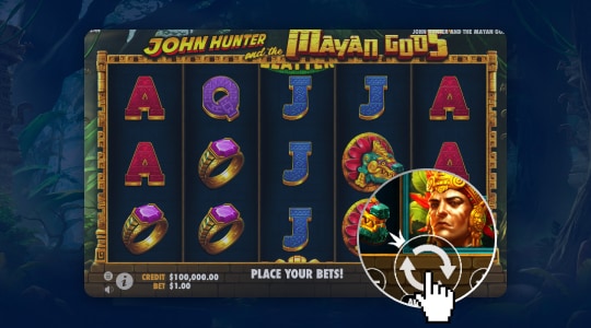 Het speelveld van John Hunter and the Mayan Gods bestaat in tegenstelling tot veel Megaways slots uit vijf rollen en drie rijen. Er zijn tien winlijnen die allemaal van links naar rechts werken en drie of meer symbolen nodig hebben voor een winnende combinatie. De wild helpt hierbij op twee manieren. Op het moment dat de wild gebruikt kan worden in een combinatie, vouwt deze zich uit over de hele rol, zodat een rol vol wildsymbolen zichtbaar is.
