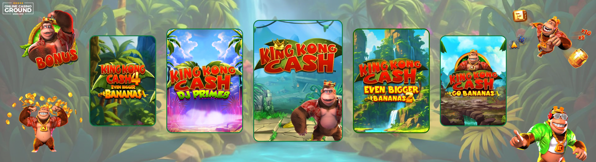 De King Kong Cash-serie van Blueprint Gaming neemt je mee naar een vrolijke jungle vol cartoonfiguren en creatieve bonusfeatures. Elk deel heeft zijn eigen draai, van klassieke free spins tot innovatieve cash collect-mechanismen en progressieve jackpots.