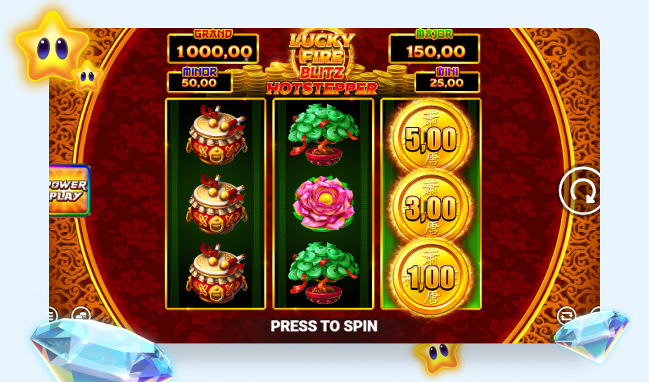 Lucky Fire Blitz Hotstepper is een gokkast ontwikkeld door Blueprint Gaming. De gokkast komt met een soort van Aziatisch thema met veel gouden munten. Symbolen zoals een gouden draak, schildpad en de koi moeten helpen bij het vormen van combinaties. Er is een bonusspel te activeren en ook jackpot prijzen zijn beschikbaar gesteld. Sinds 24 april 2024 is deze gokkast te spelen bij een van de legale Nederlandse online casino’s.