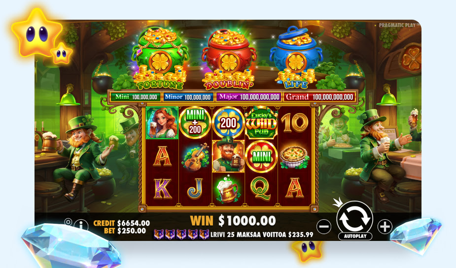 Lucky’s Wild Pub is een gokkast ontwikkeld door spelmaker Pragmatic Play. Een maximale winst van 10.000x de inzet is haalbaar en er zijn meerdere jackpots te winnen tijdens actieve bonusfeatures. Deze gokkast kun je sinds 6 maart 2025 terugvinden in het spelaanbod bij diverse online casino’s in Nederland.