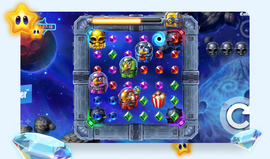 Tijdens de alien invasie gaat de ruimtebandiet symbolen per kolom in één klap verzamelen. Het is mogelijk om met deze ruimtebandiet afgezien van gems ook vogels en feature symbolen (behalve het zwarte gat) verzamelen.
