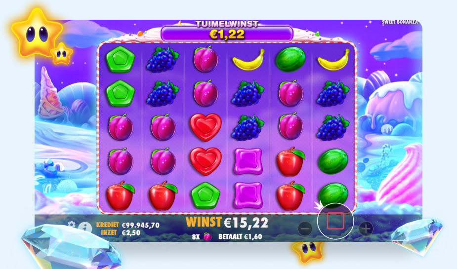 Sweet Bonanza is op dit moment een van de populairste videoslots die bij legale online Nederlandse casino’s te spelen is. Pragmatic Play heeft er patent op om gokkasten te ontwerpen die vervolgens razend populair worden. Denk bijvoorbeeld aan Wolf Gold, Big Bass Bonanza of Gates of Olympus. Sweet Bonanza heeft wat weg van Candy Crush, met één groot verschil. Bij Candy Crush spelen mensen alleen voor de eer, terwijl er bij Sweet Bonanza echt geld gewonnen kan worden. In deze review ga ik verder onderzoeken wat de redenen zijn dat Sweet Bonanza zo goed scoort.