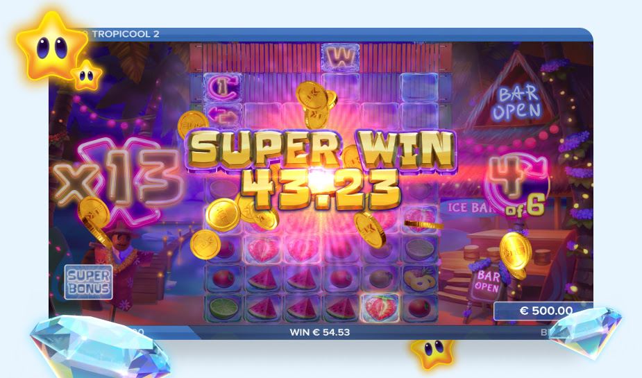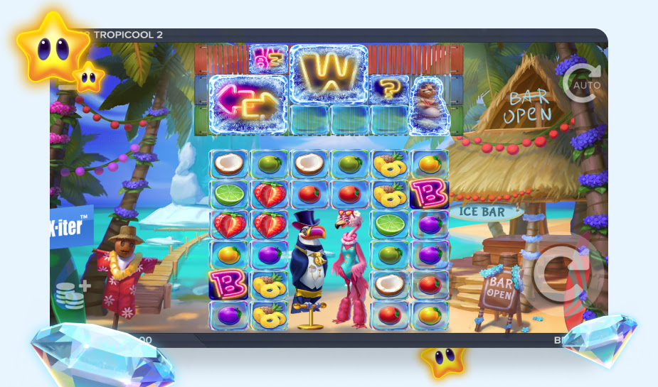 Het eerste deel, Tropicool, introduceerde de opvallende combinatie van een zomers strand en een winterse twist. Met een 6×6 speelveld en 46.656 winmanieren, aangevuld met speciale symbolen boven de rollen, werd direct een unieke speelervaring neergezet. De RTP lag op 95%, iets hoger dan in de latere delen, en de maximale winst was 10.000× de inzet. De introductie van de Cool Reel gaf het basisspel extra spanning, waarbij elke spin onverwachte features kon activeren.