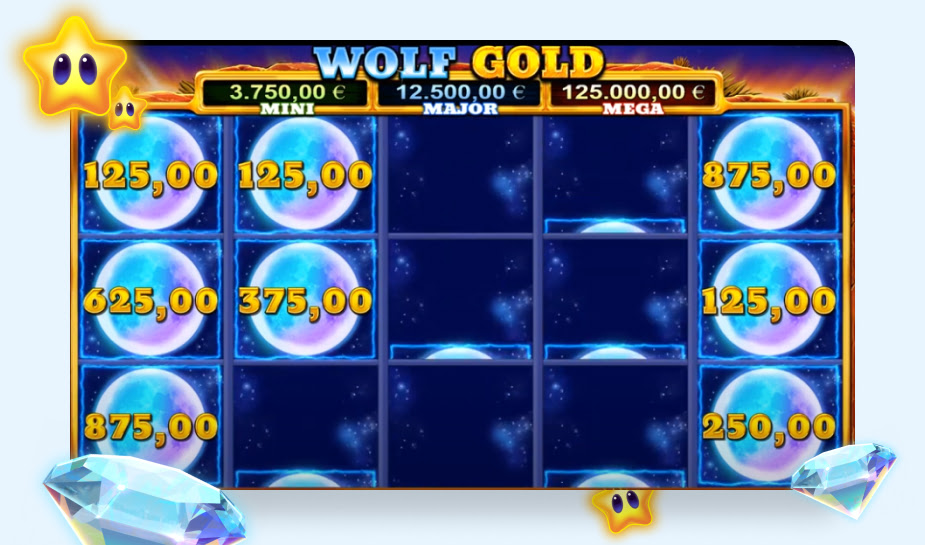 Het kan ook zijn dat er tijdens de Money Respin Feature op één van de volle manen het mini of major jackpot symbool staat. In dit geval win je de mini (30 x je totale inzet) of de major jackpot (100 keer je inzet).