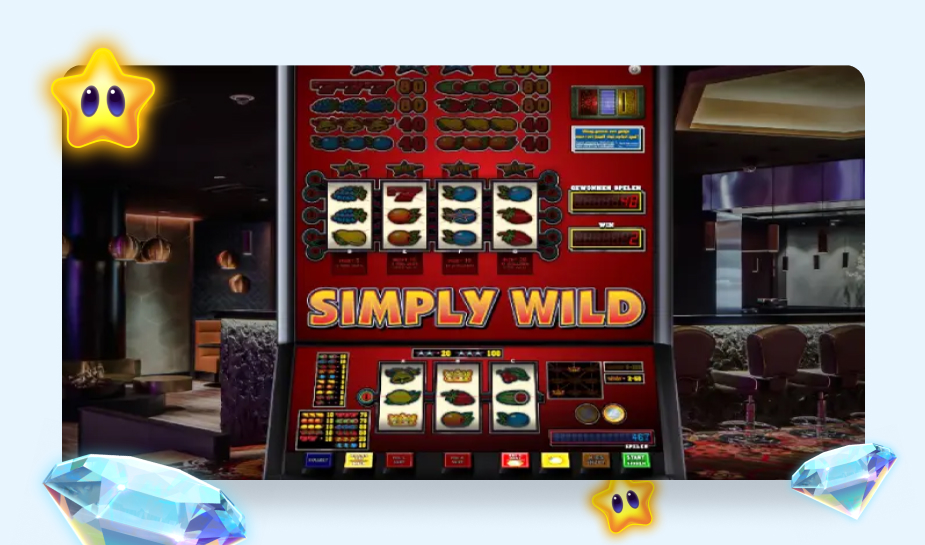 Evi kiest voor het spel Simply Wild van spelmaker Greentube. Bij dit spel krijg je echt die nostalgische vibe die je van een fruitautomaat hoort te krijgen. Het spel is letterlijk van het café naar het online casino gebracht. Op je scherm staat namelijk de fysieke gokkast. Compleet met bovenspel.