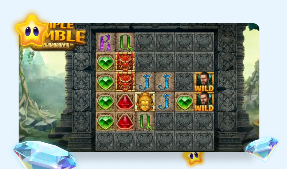 Temple Tumble Megaways is een slot waarvan het verhaal zich afspeelt diep in de jungle van Cambodja. Voordat het speelveld in beeld verschijnt laat spelmaker Relax Gaming zien hoe de avonturier op de Wilds daar terecht gekomen is. Het doel van het spel is winnende combinaties maken en de muur afbreken. Er zijn 46.656 manieren om dat te doen.